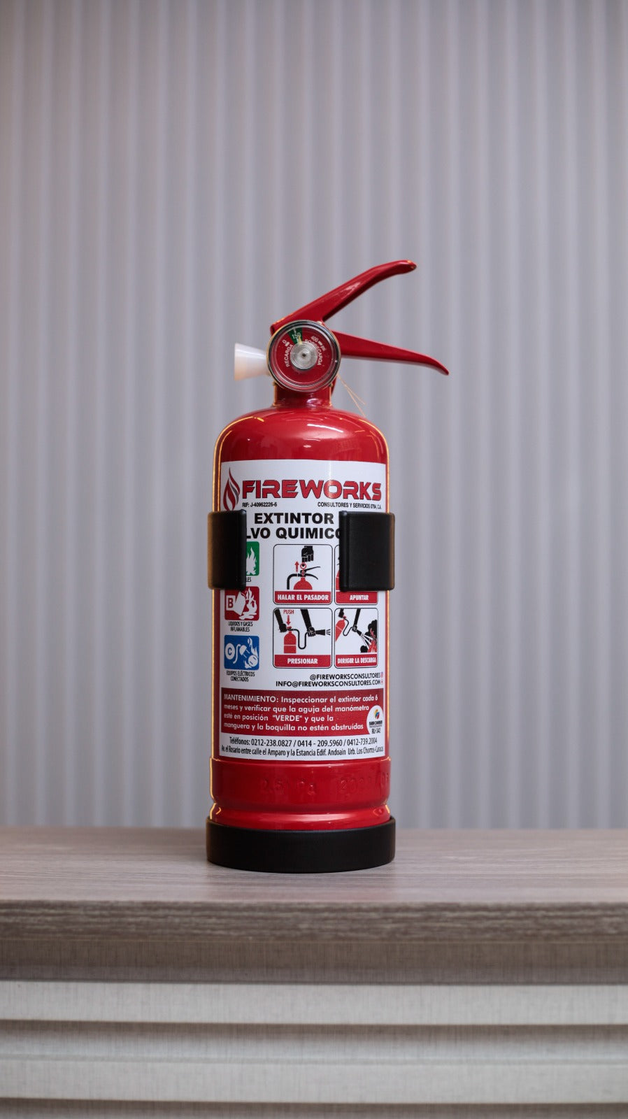 Extintor portátil de 2.5 libras con polvo químico seco (PQS) de alta efectividad. Ideal para combatir incendios de clase A, B y C en hogares, oficinas y vehículos. Diseño compacto y ligero que permite fácil manejo y almacenamiento. Cuenta con manómetro de presión para verificar su estado operativo. Incluye soporte de pared para acceso rápido en caso de emergencia. Cumple con normas de seguridad establecidas. Mantenimiento sencillo y recarga disponible.